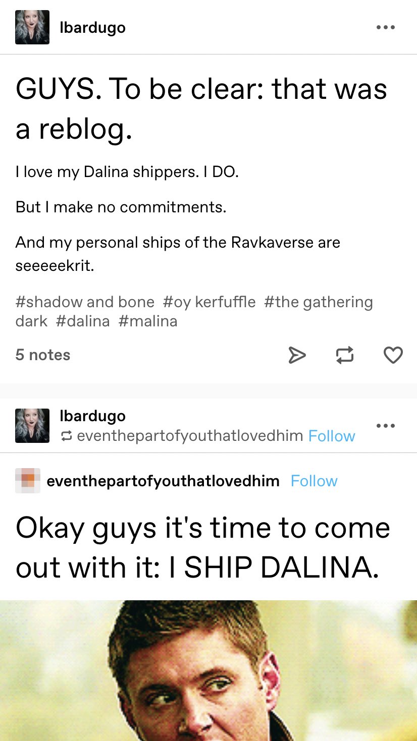 Mel On Twitter Leigh Bardugo Doesn T Want You To Ship Darklina Leigh Bardugo S Tumblr Https T Co 69fqpn7hug Twitter